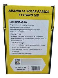 ARANDELA SOLAR PAREDE EXTERNO LED BOMVINK
