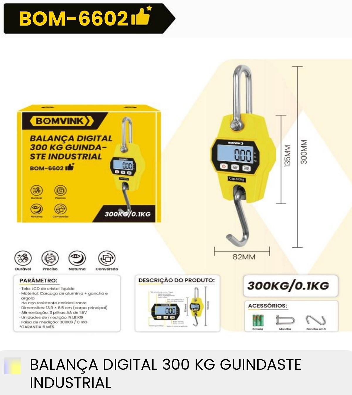 BALANCA DIGITAL 300KG GUINDASTE INDUSTRIAL BOMVINK