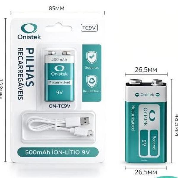 BATERIA RECARREGÁVEL 9V 500MAH ONISTEK