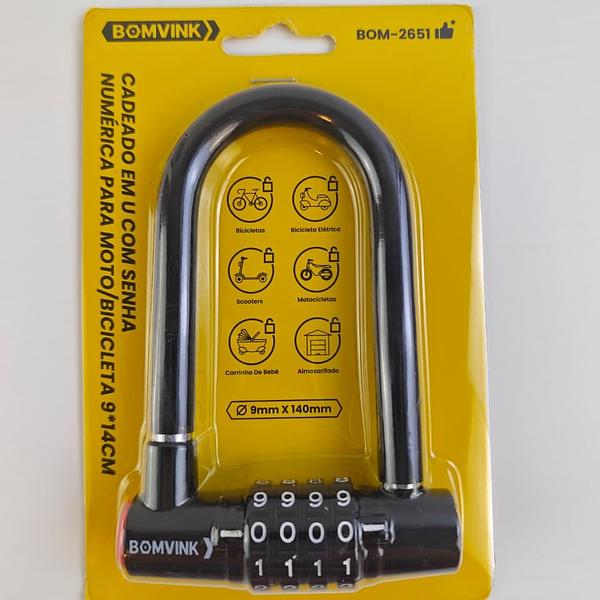 CADEADO EM U COM SENHA NUMERICA PARA MOTO/BICICLETA 9*14CM BOMVINK