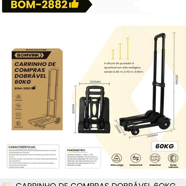 CARRINHO DE COMPRAS DOBRAVEL 60KG BOMVINK