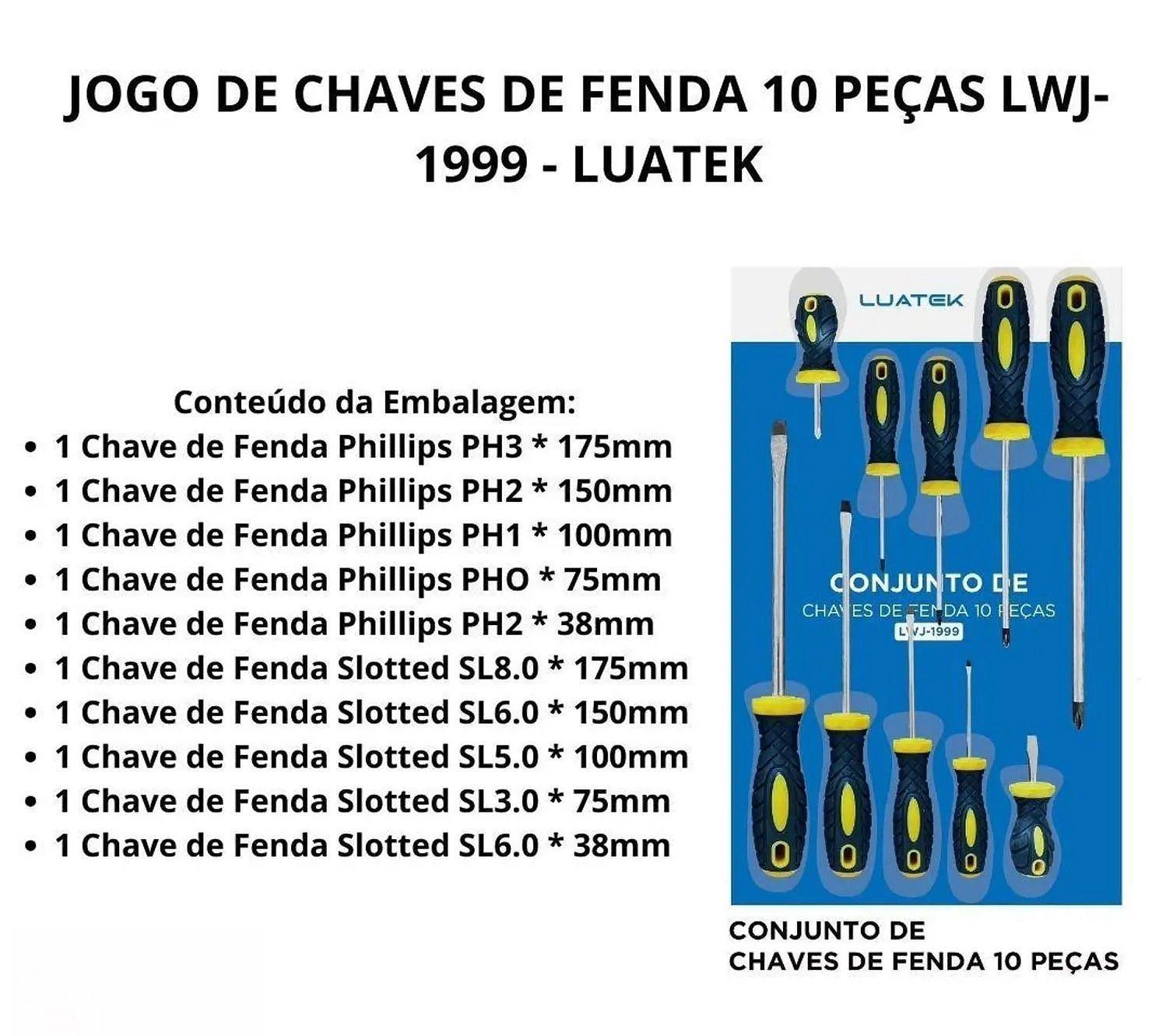 CONJUNTO DE CHAVES DE FENDA 10 PEÇAS LUATEK