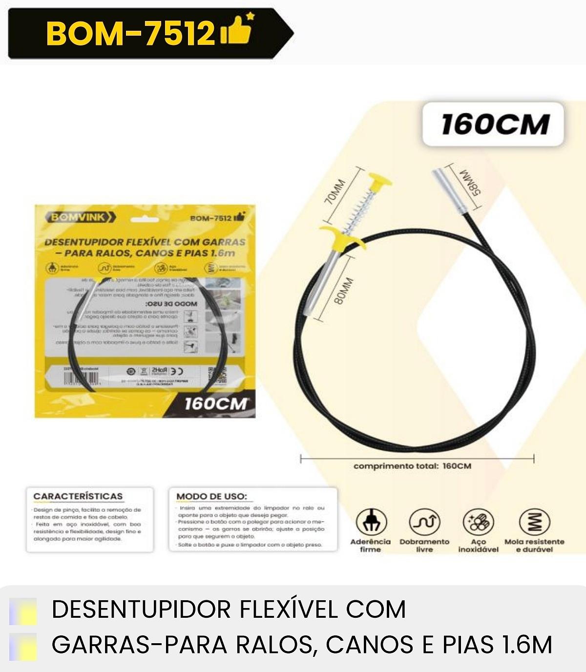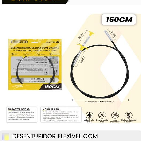 DESENTUPIDOR FLEXIVEL COM GARRAS PARA RALOS,CANOS E PIAS 1.6M BOMVINK