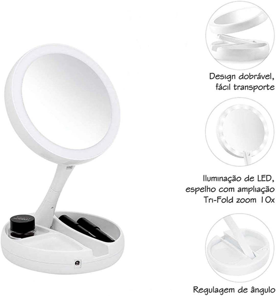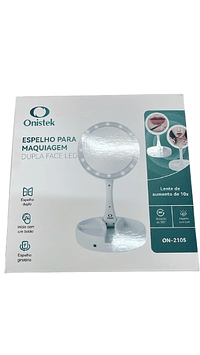 ESPELHO PARA MAQUIAGEM DUPLA FACE LED LENTE DE AUMENTO DE 10X ONISTEK