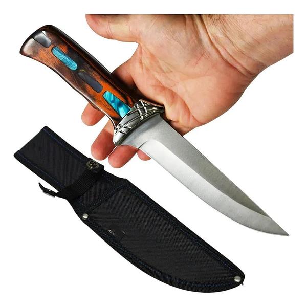 FACA PARA CHURRASCO LUATEK AÇO INOX 30CM CABO MADEIRA BAINHA NYLON LUATE