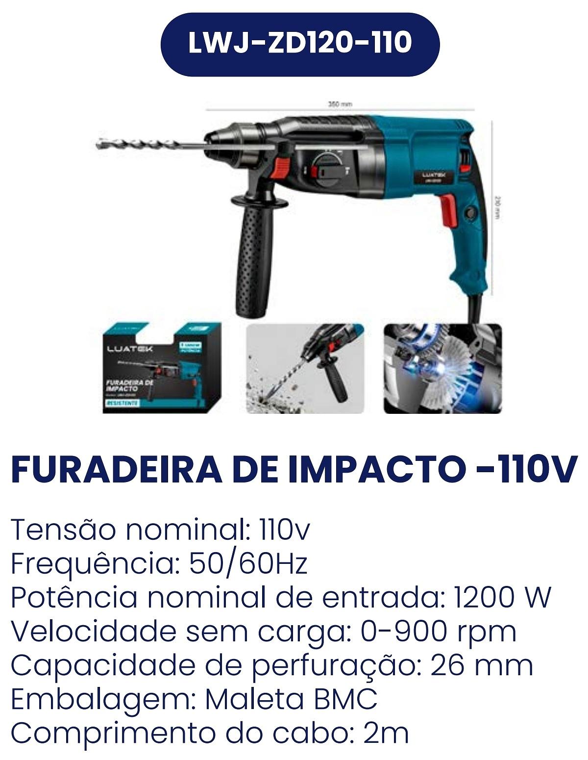FURADEIRA DE IMPACTO 1200W POTENCIA LUATEK