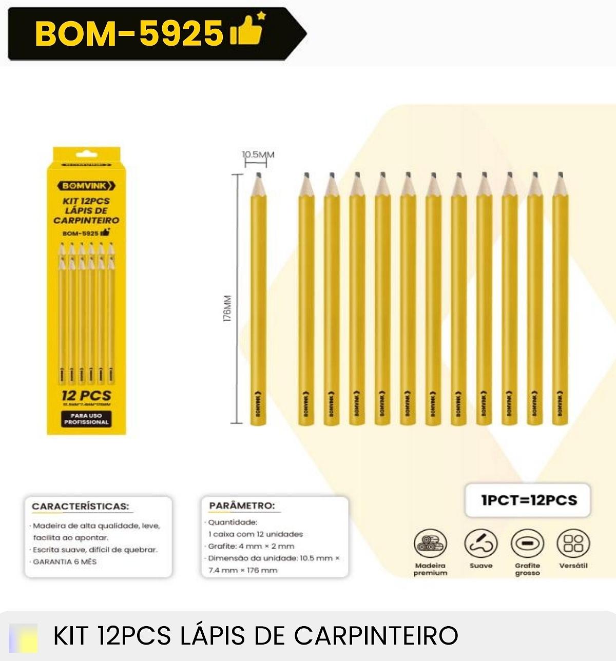 KIT 12PCS LAPIS DE CARPINTEIRO 12PCS BOMVINK