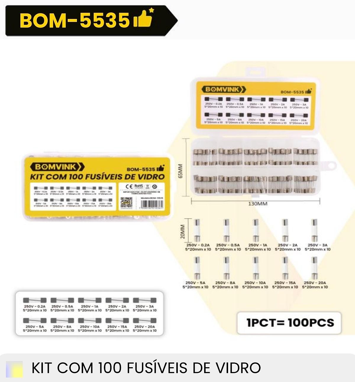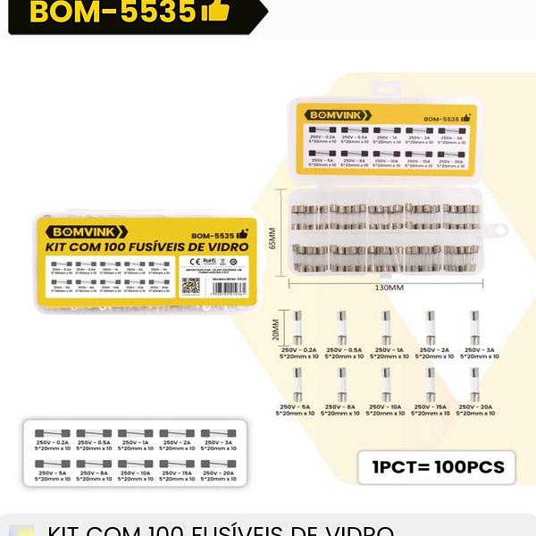 KIT COM 100 FUSIVEIS DE VIDRO BOMVINK