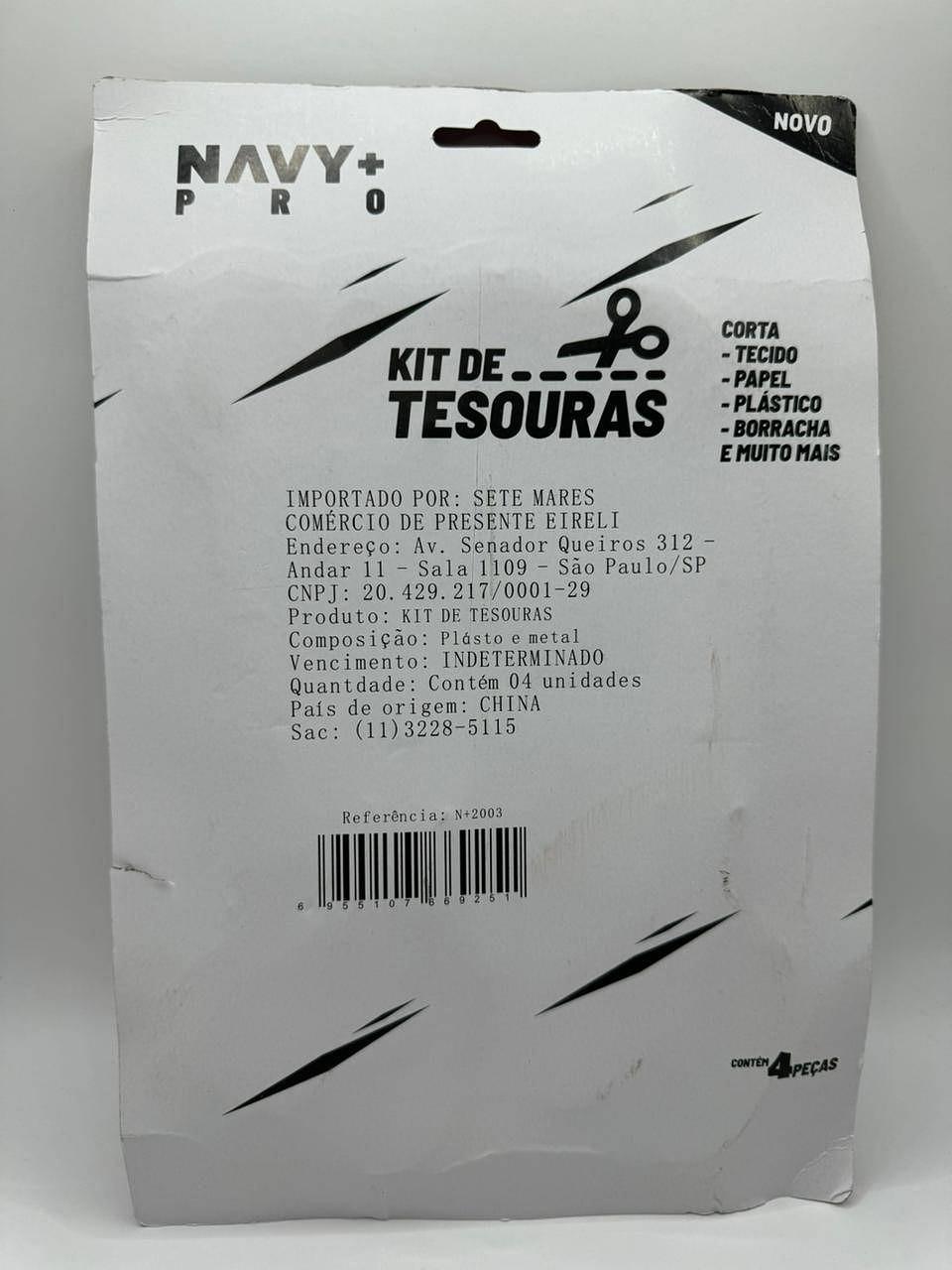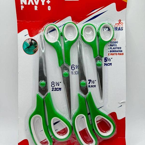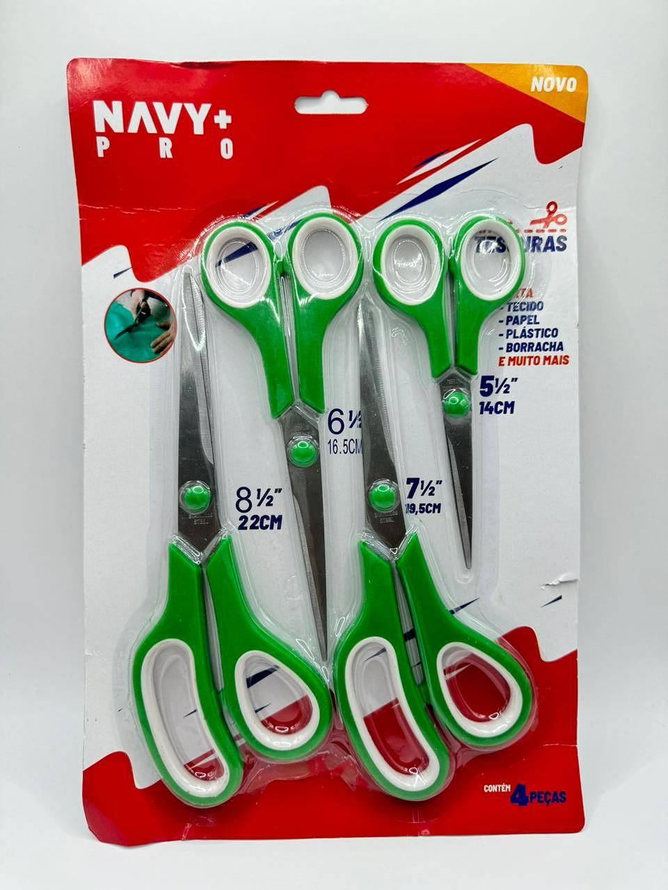KIT DE TESOURAS 4 UNIDADES METAL E PLASTICO NAV+PRO
