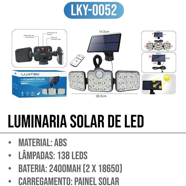 LUMINARIA SOLAR COM SENSOR DE MOVIMENTO LUATEK
