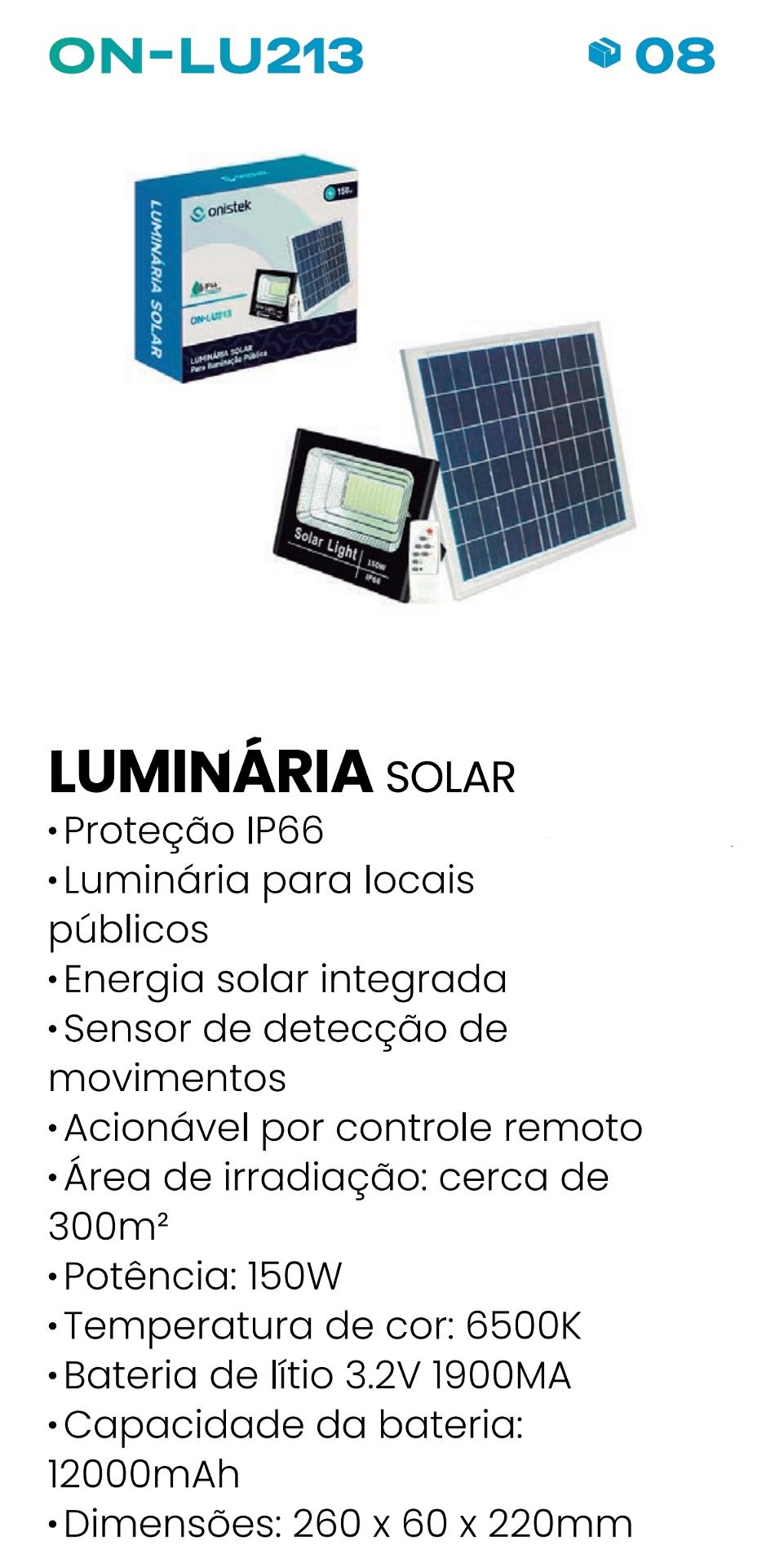LUMINARIA SOLAR PARA ILUMINAÇÃO PUBLICA 150W ONISTEK