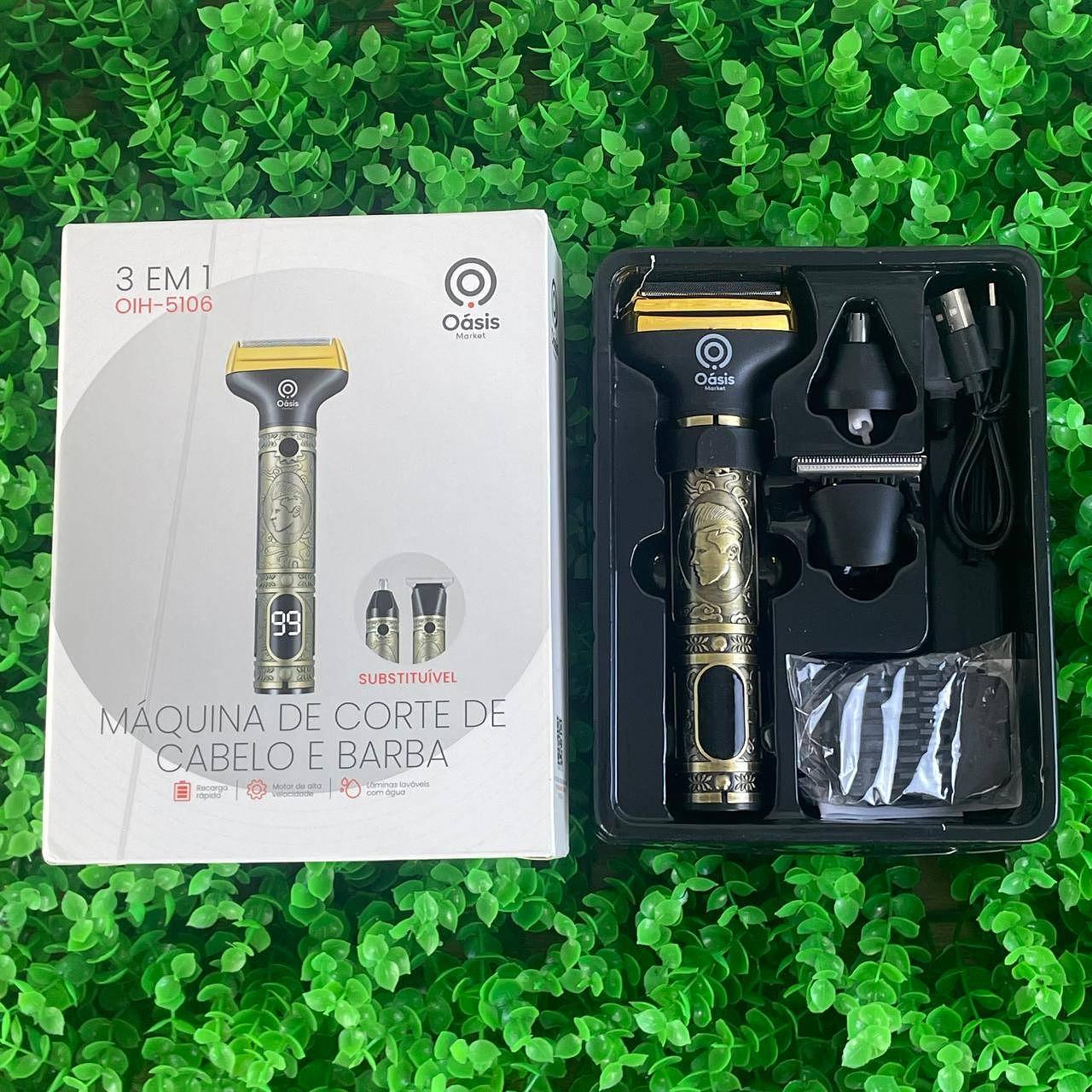 MAQUINA DE CORTE DE CABELO E BARBA 3 EM 1 OASIS MARKET