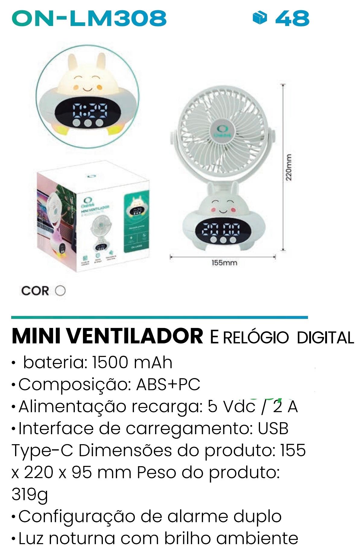 MINI VENTILADOR RELOGIO DIGITAL ONISTEK