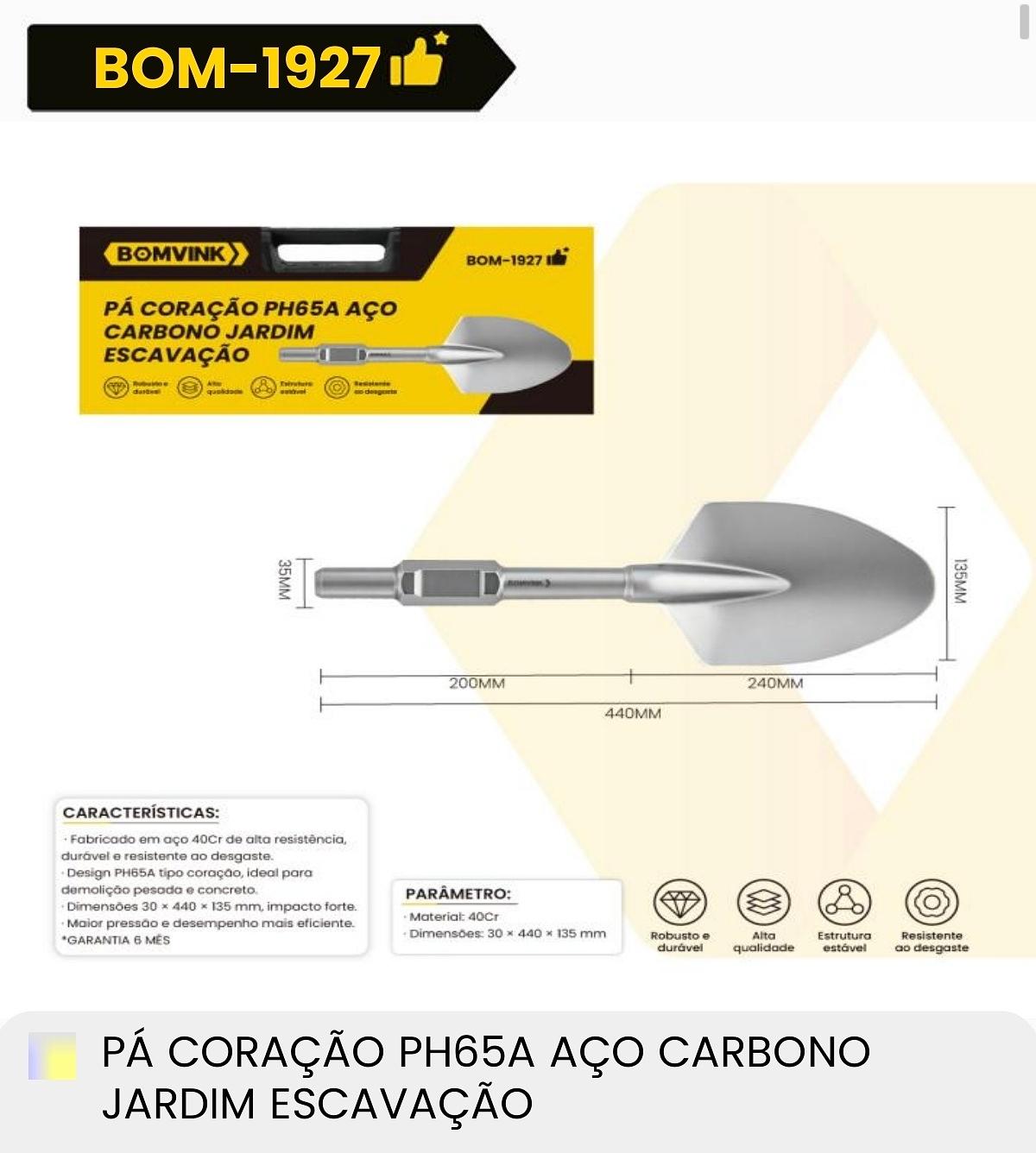 PA CORACAO PH65A ACO CARBONO JARDIM ESCAVACAO BOMVINK