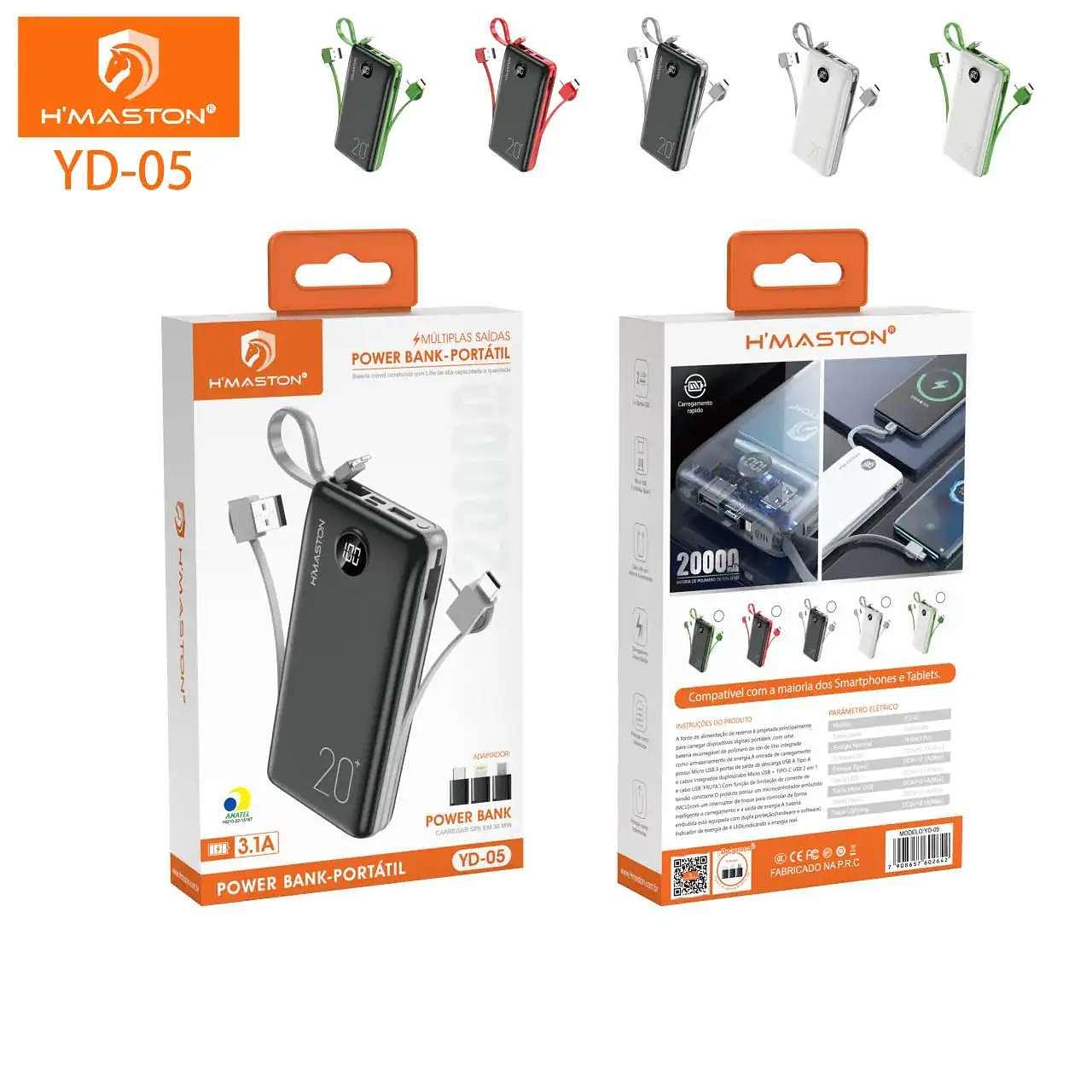 POWER BANK-PORTATIL MULTIPLAS SAIDAS 20000MAH H´MASTON
