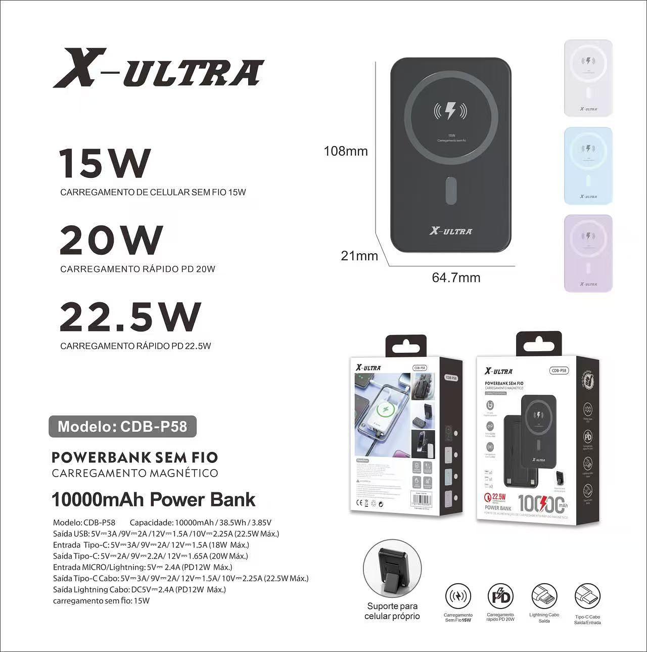 POWERBANK SEM FIO 22.5W 10000MAH X-ULTRA