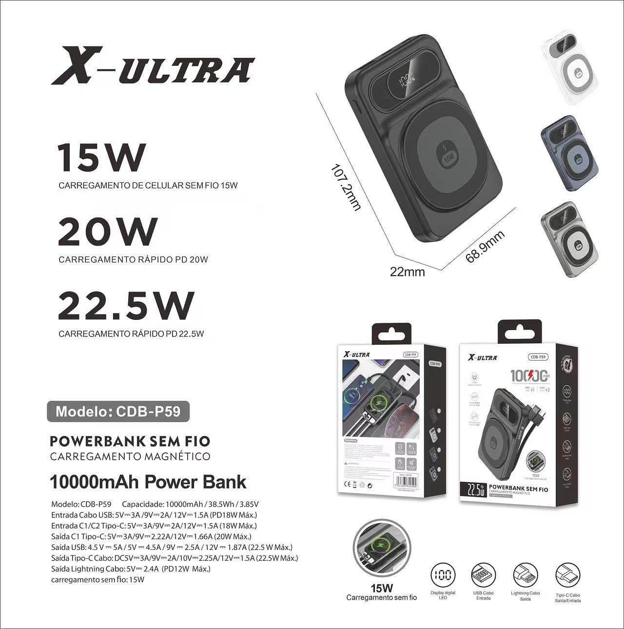 POWERBANK SEM FIO 22.5W 10000MAH X-ULTRA