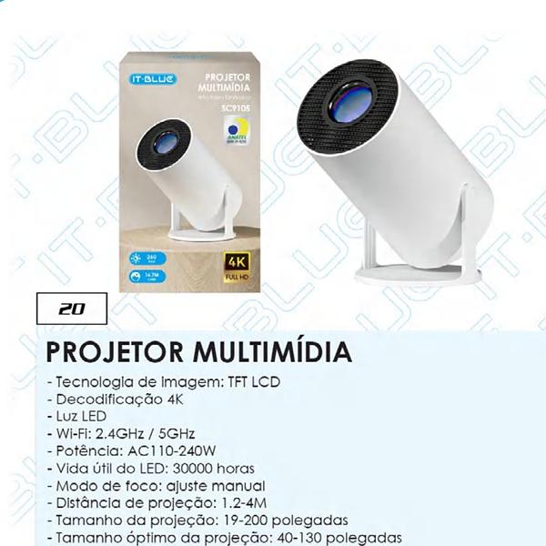PROJETOR MULTIMIDIA 4K FULL HD 260ANSI 16.7M CORES IT-BLUE