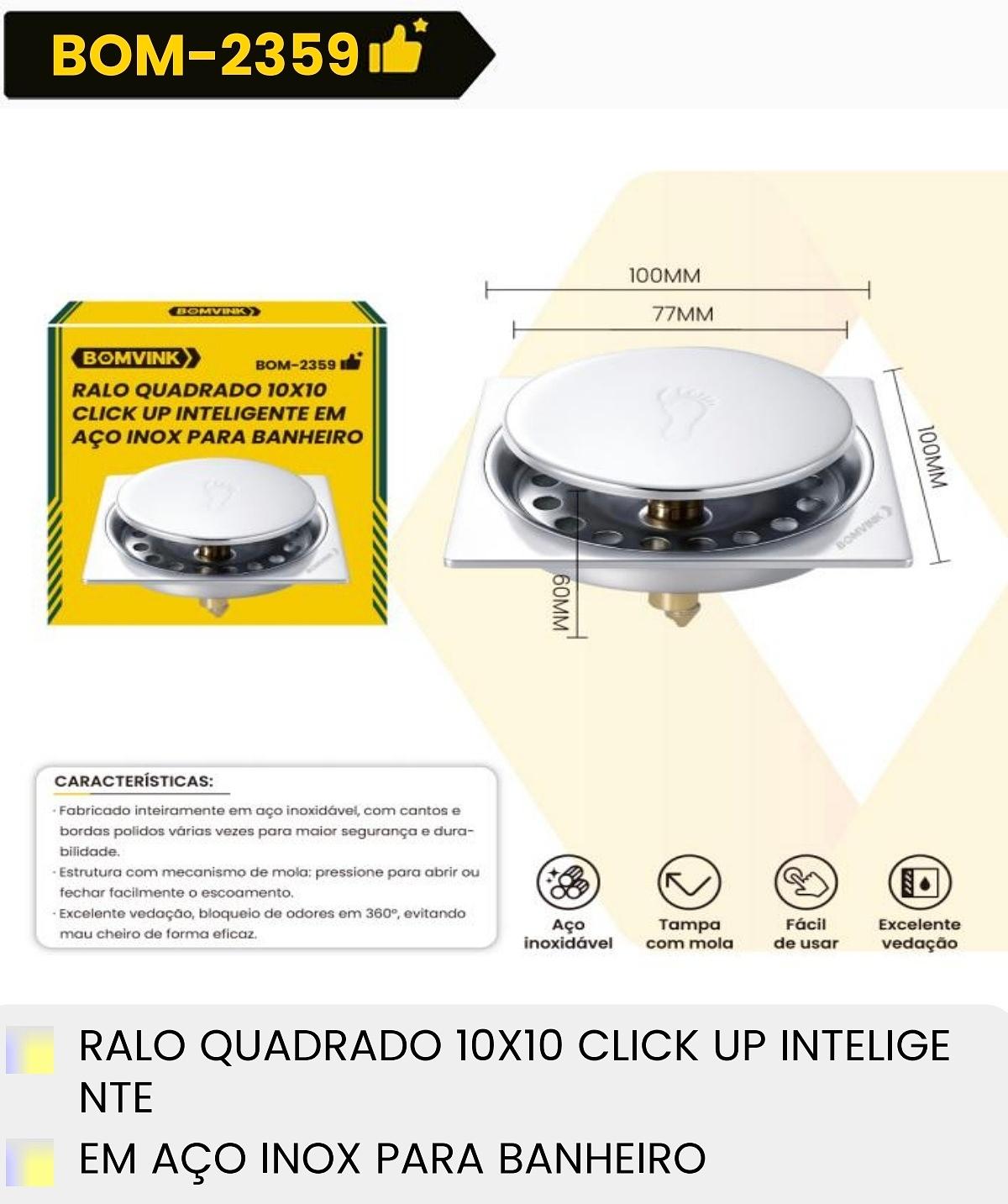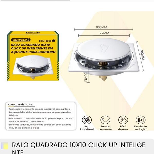 RALO QUADRADO 10*10 CLICK UP INTELIGENTE EM ACO INOX PARA BANHEIRO BOMVINK