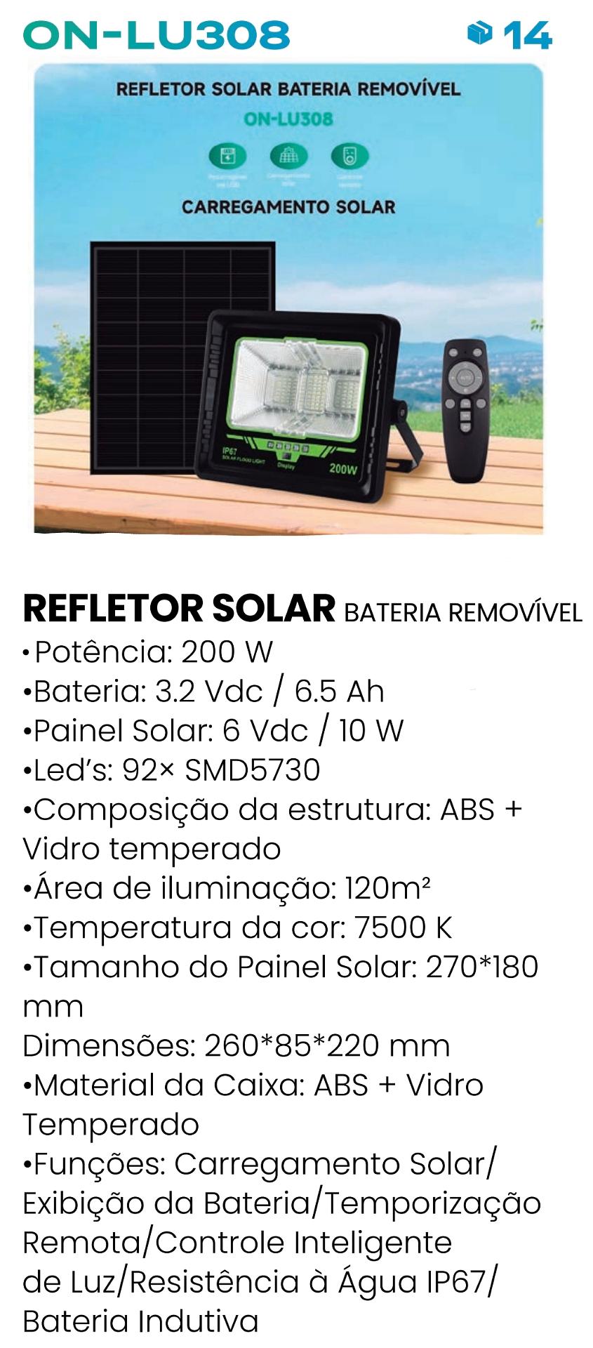 REFLETOR SOLAR BATERIA REMOVIVEL ONISTEK