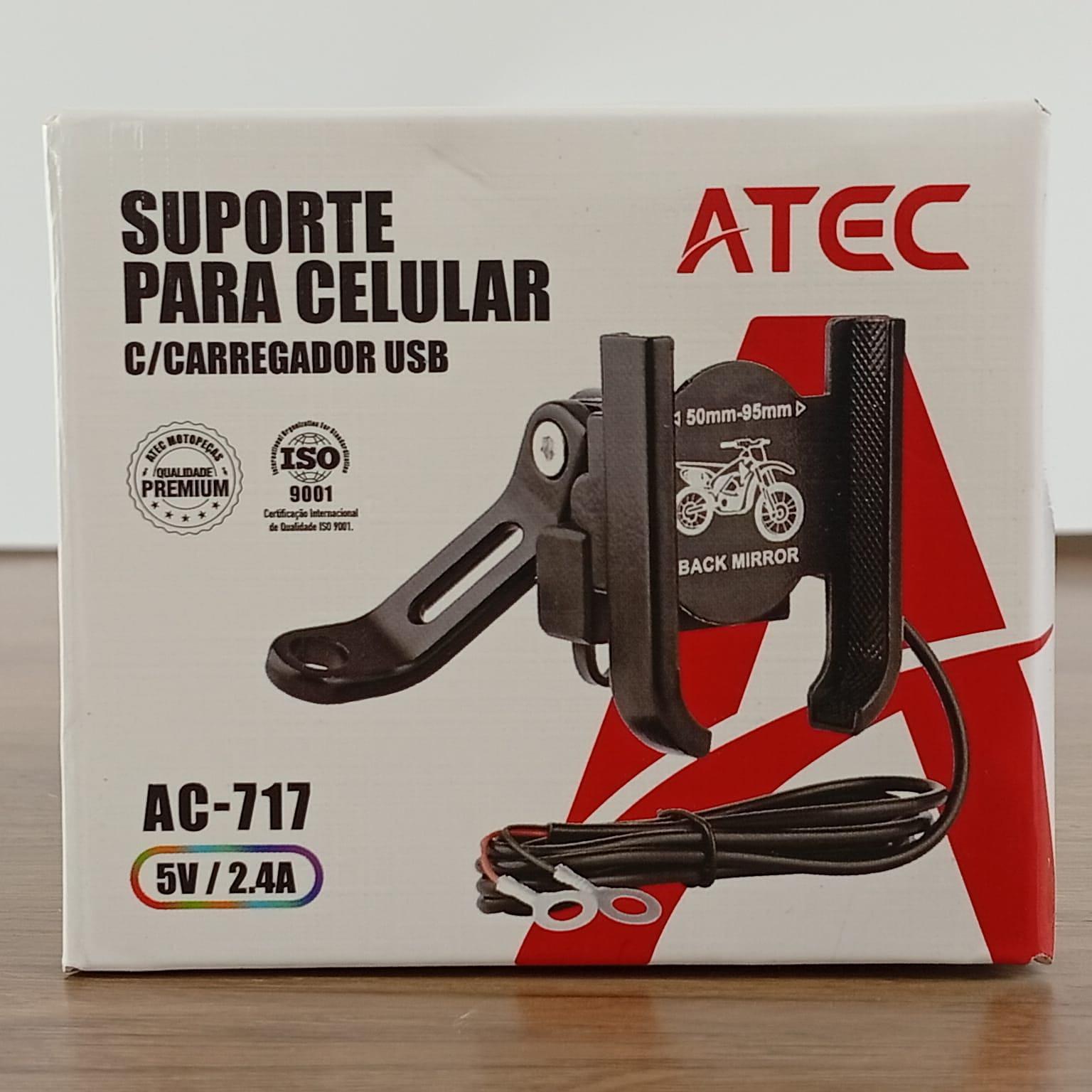 SUPORTE PARA CELULAR C/CARREGADOR USB 5V-2.4A ATEC
