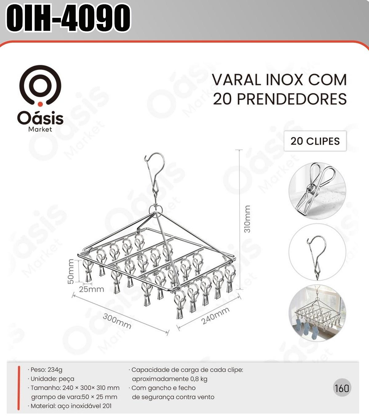 VARAL INOX COM 20 PRENDEDORES OASIS